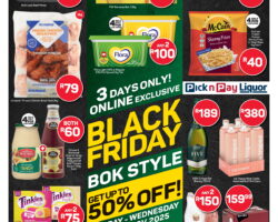 Browse Pick N Pay Black Friday Specials 2025, Best Offers & Specials – Deals from 24 November until 26 November. Don’t miss the Pick N Pay Black Friday Deals on a wide range of products, including electronics, coffee, home, outdoor, baby items, beauty products, fresh food, and more.