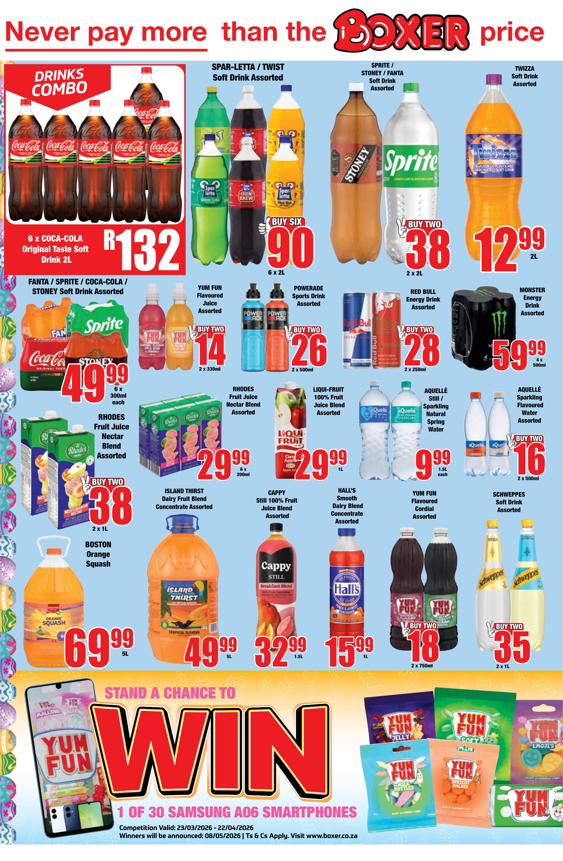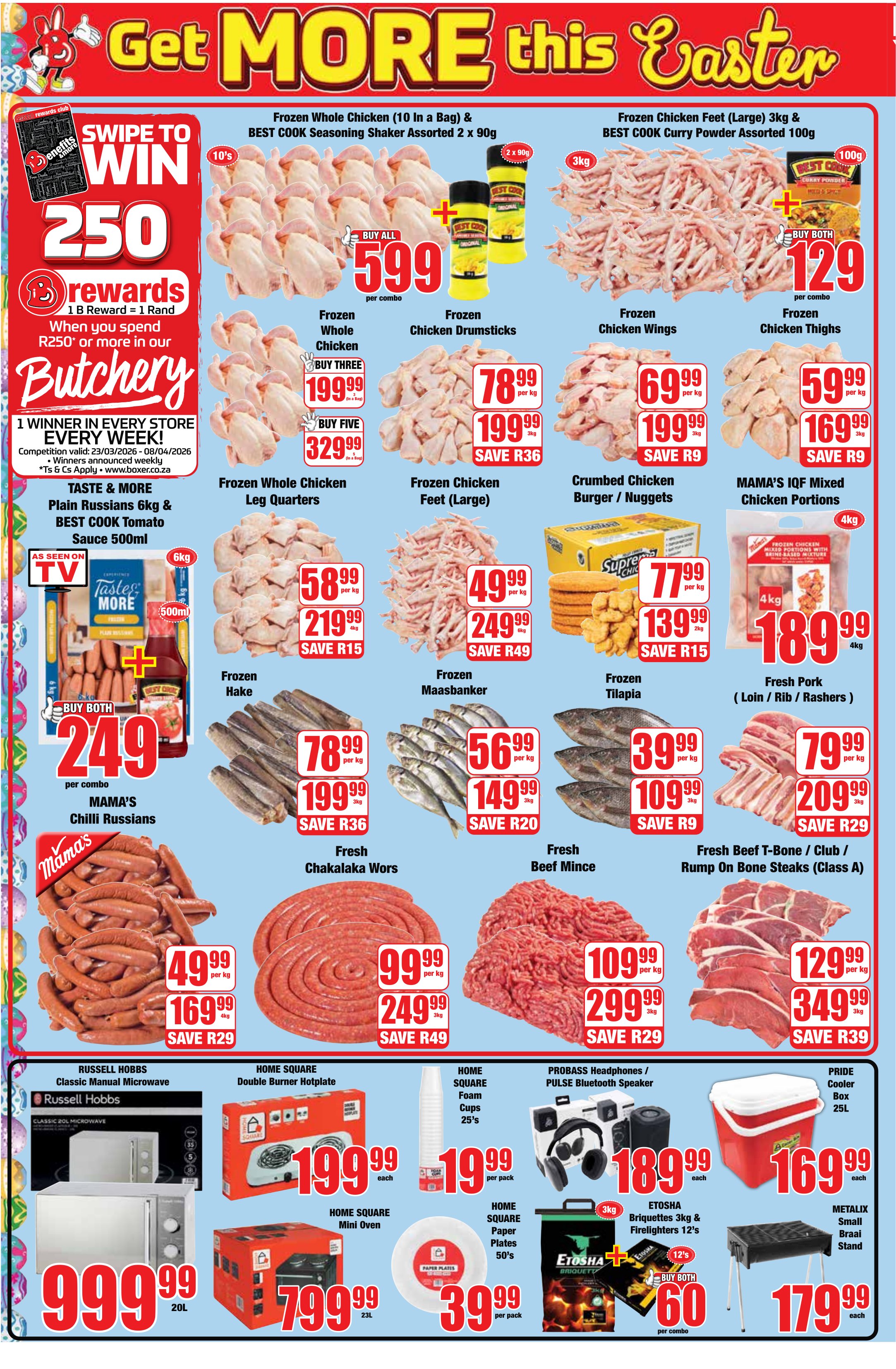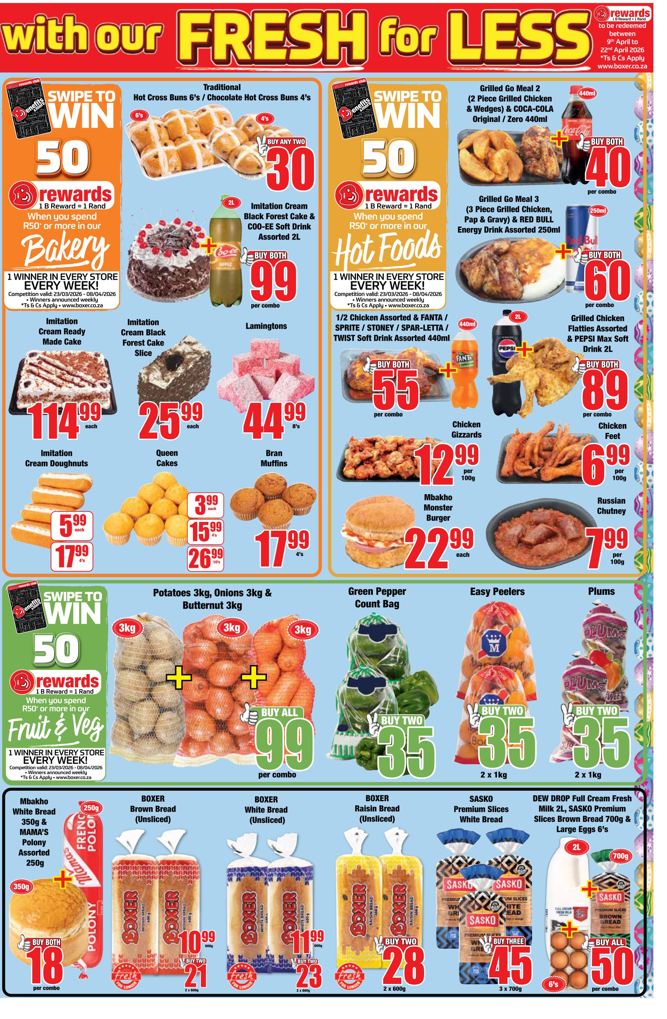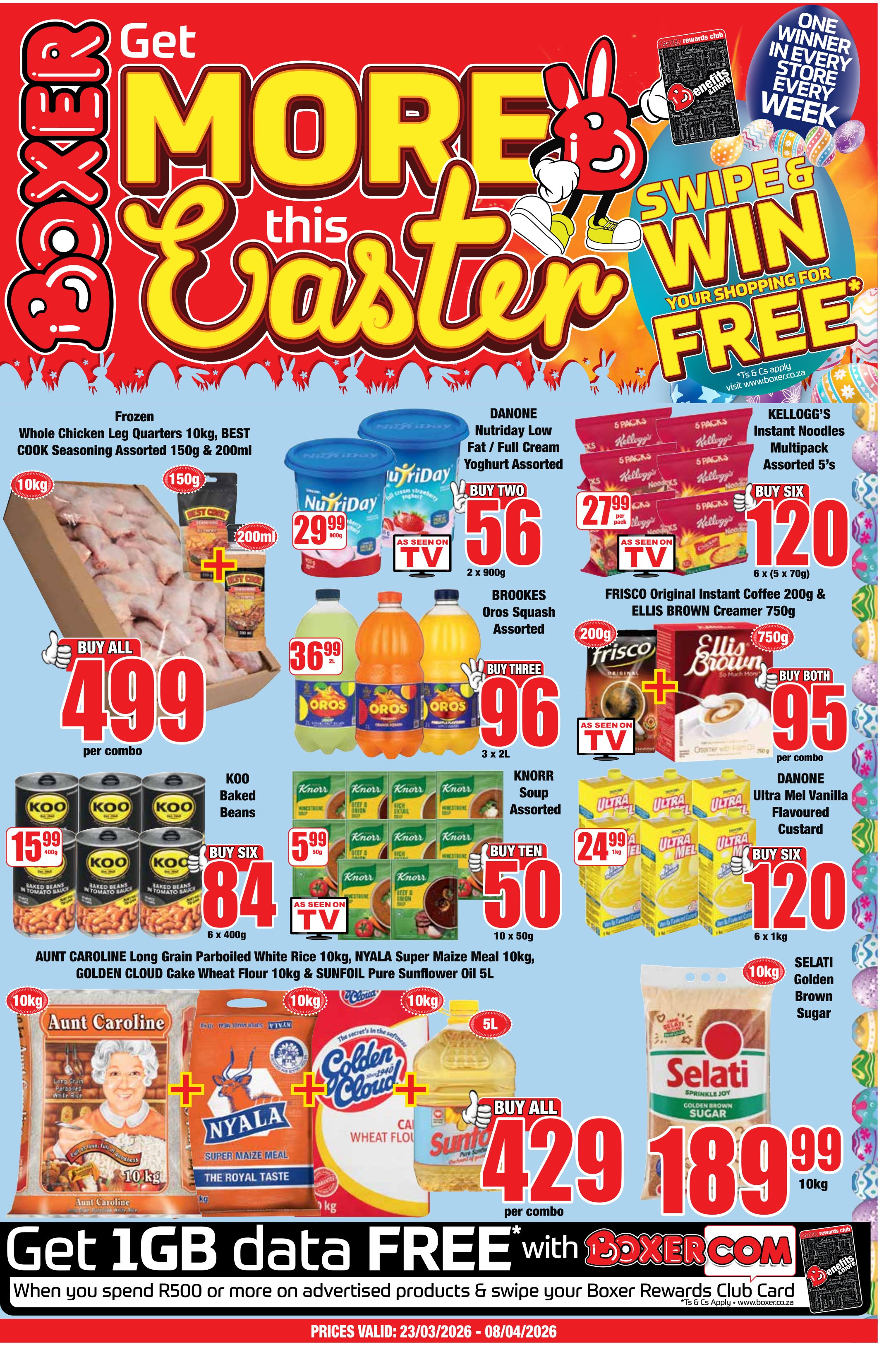 Browse Boxer KwaZulu-Natal Catalogue Deals for South Africa, valid 23 March – 8 April, 2026. Don’t miss the Boxer Specials, and save up to 70% OFF on groceries, fresh fruit and vegetables, prepared food, and household supplies. Also check the Pick N Pay Weekly Specials.