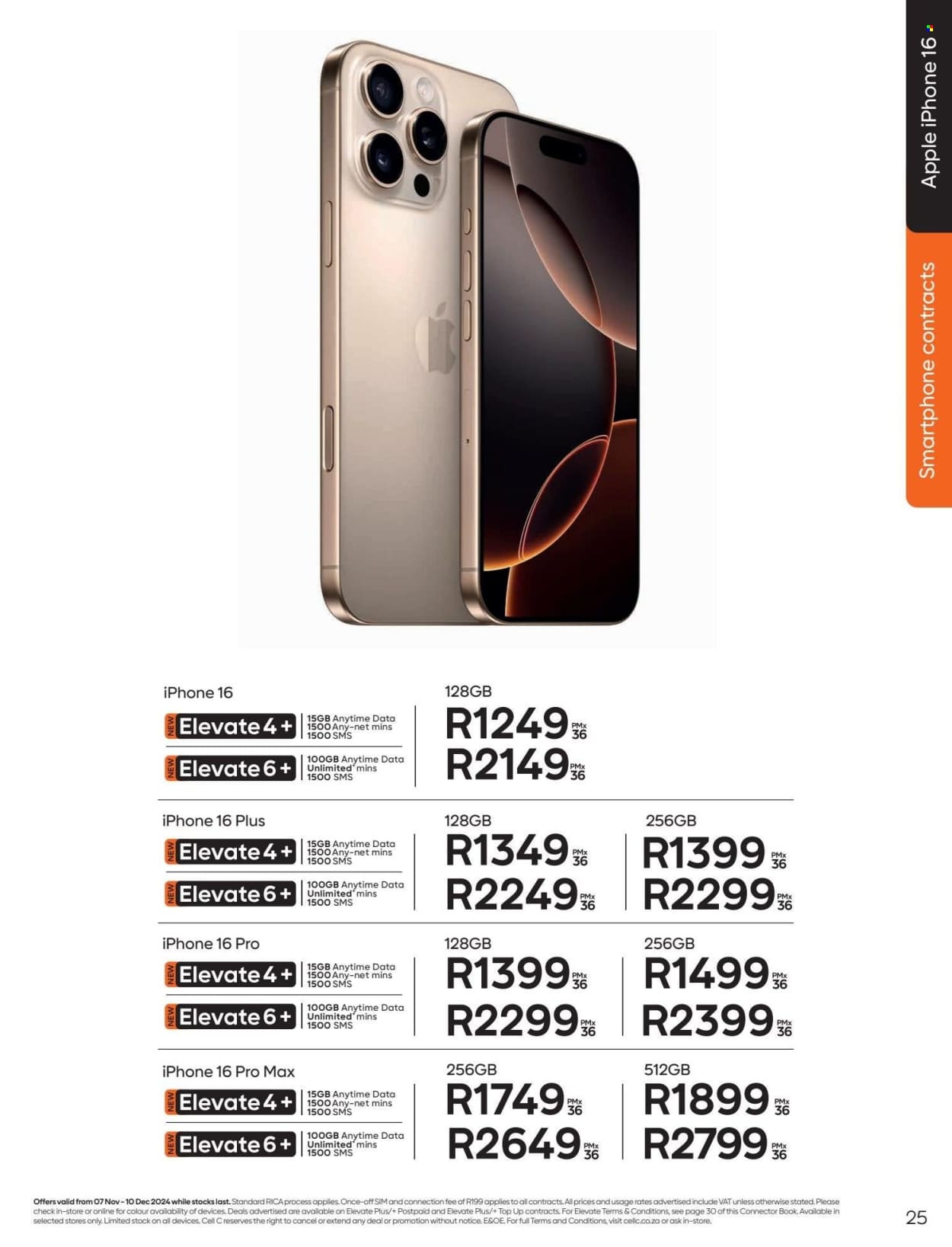 Browse the current Cell C Specials valid 7 November – 10 December, 2024. Save with this month Cell C promotions, iPhone deals and prepaid devices sales & promotions.