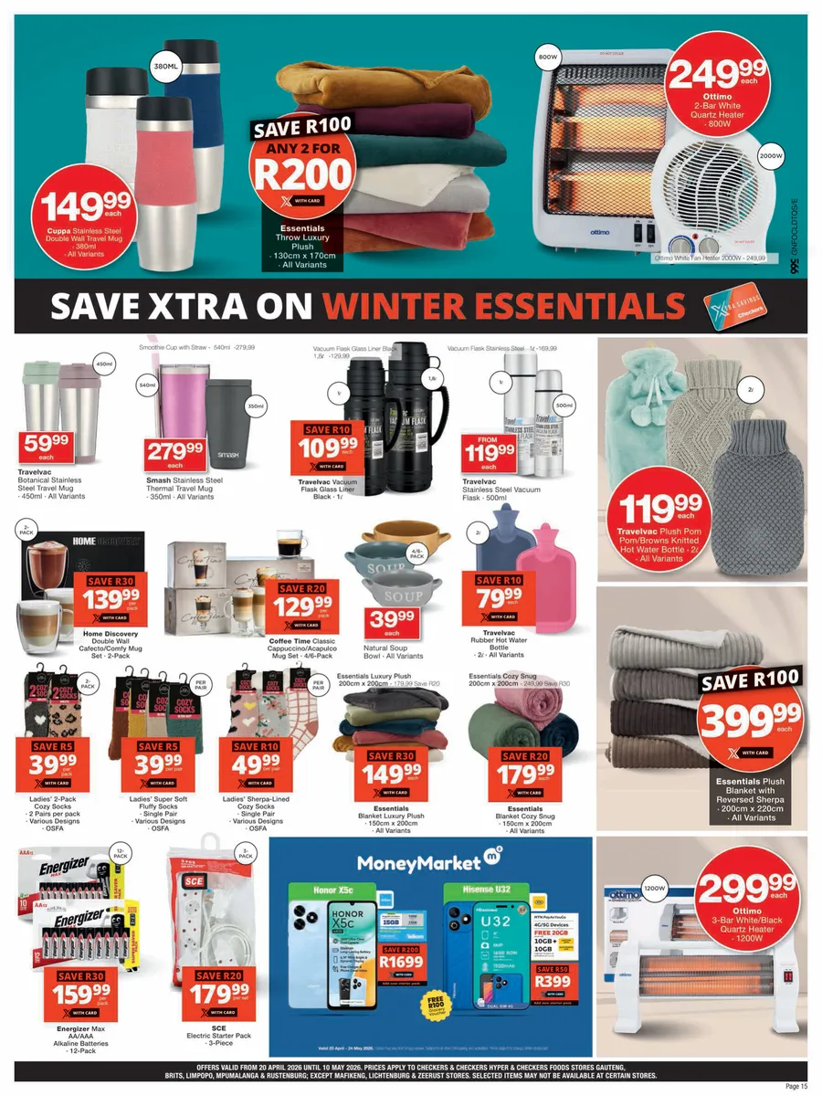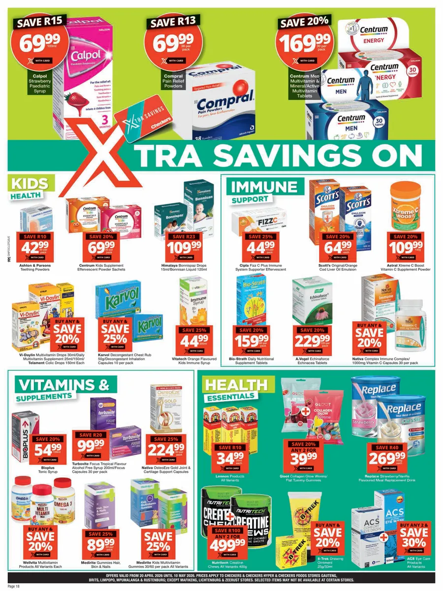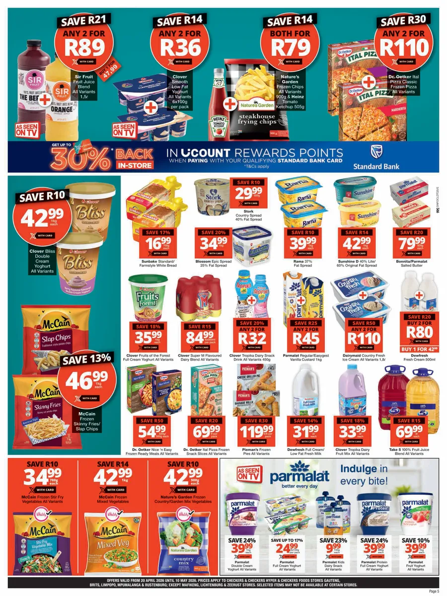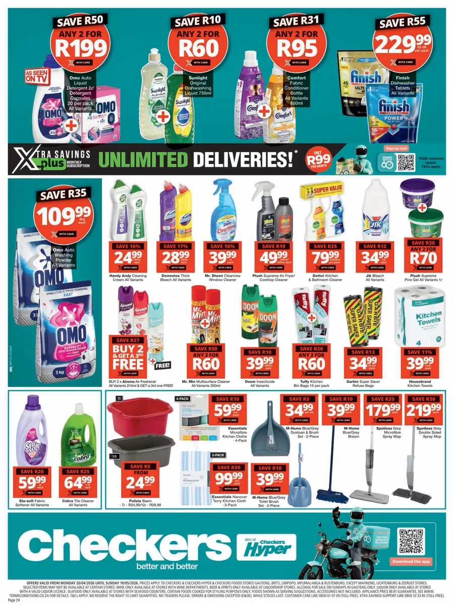 View the current Checkers Catalogue Offers, valid 20 April – 10 May, 2026. Don’t miss the Checkers Specials and grocery promotions & offers from the current Catalogue, and save even more with your Xtra Savings Card.