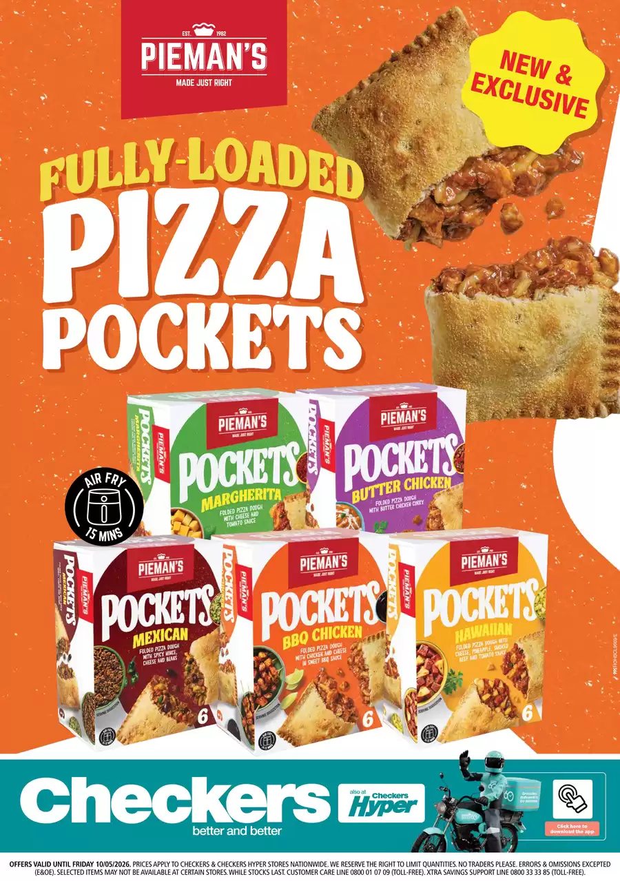 Find the Checkers Catalogue, valid 7 April – 19 April, 2026. Save with the Checkers best offers of the year, grocery specials and supermarket sales. Shop extended trading hours from 6 am to 10 pm and get up to 50% OFF in savings. Promotions available for Coca-Cola, Russell Hobbs small appliances, Jumbo bear, Baby travel system, Cyclone Mountain bike, Ariel laundry detergent, Pantene shampoo, Cadbury chocolates.
