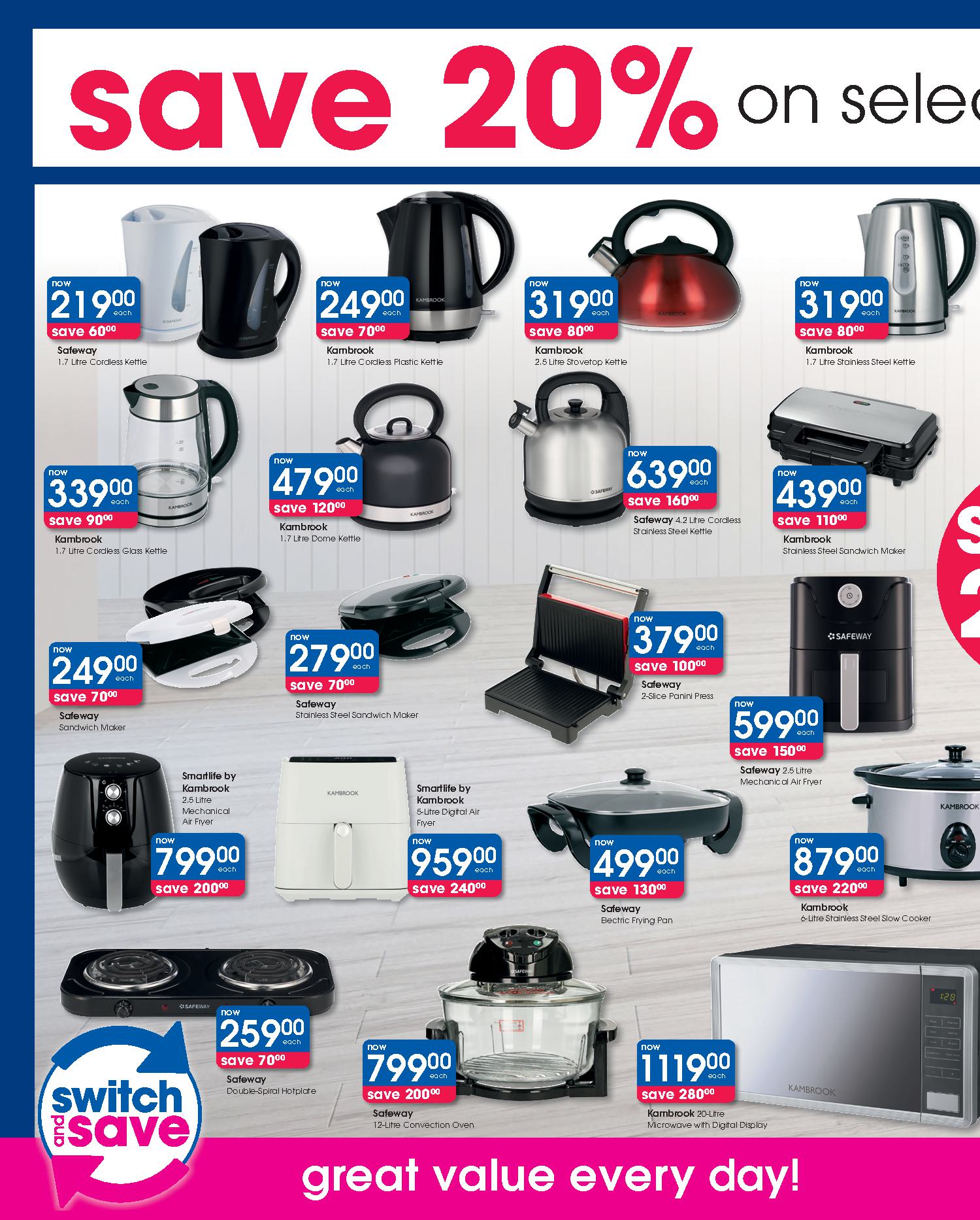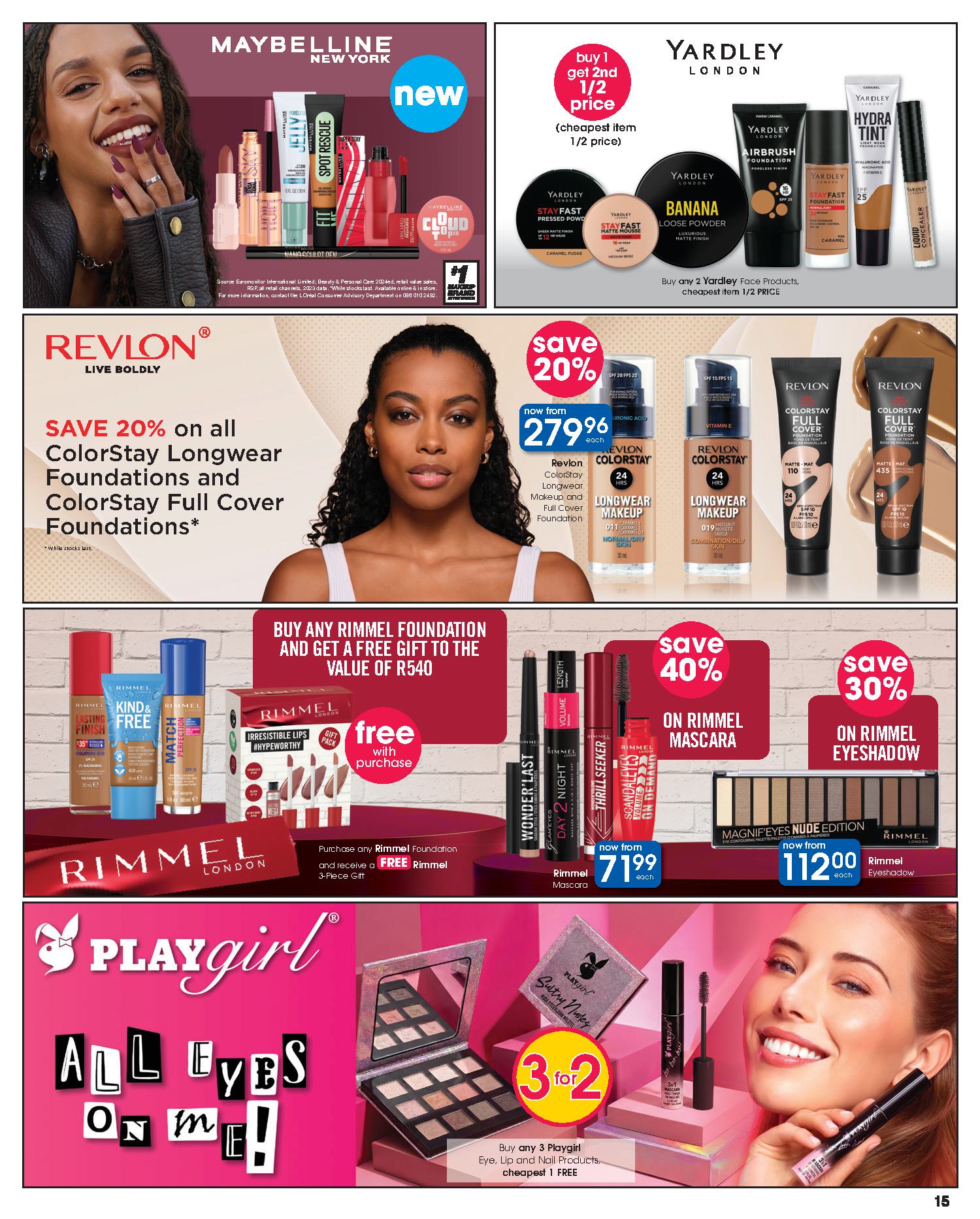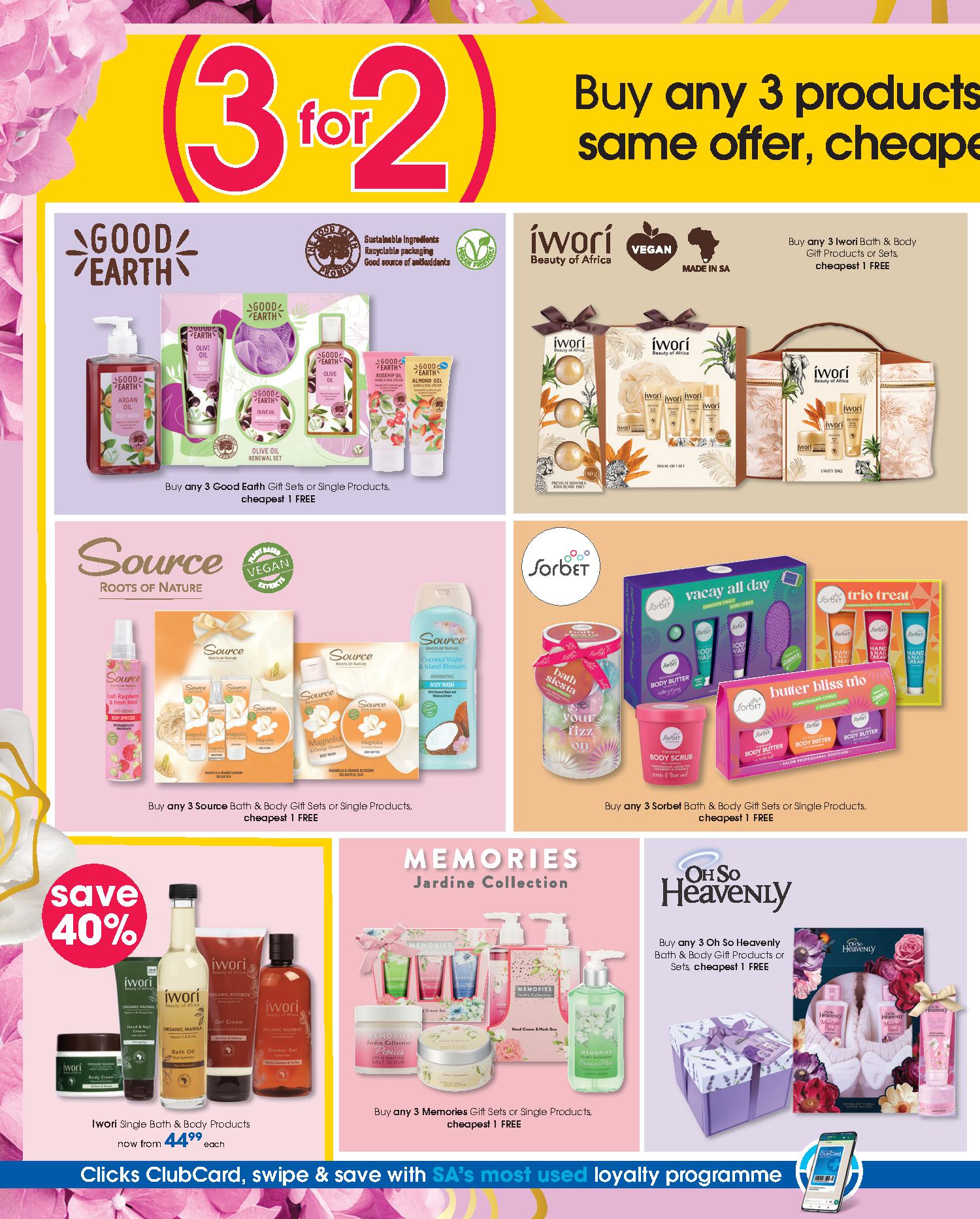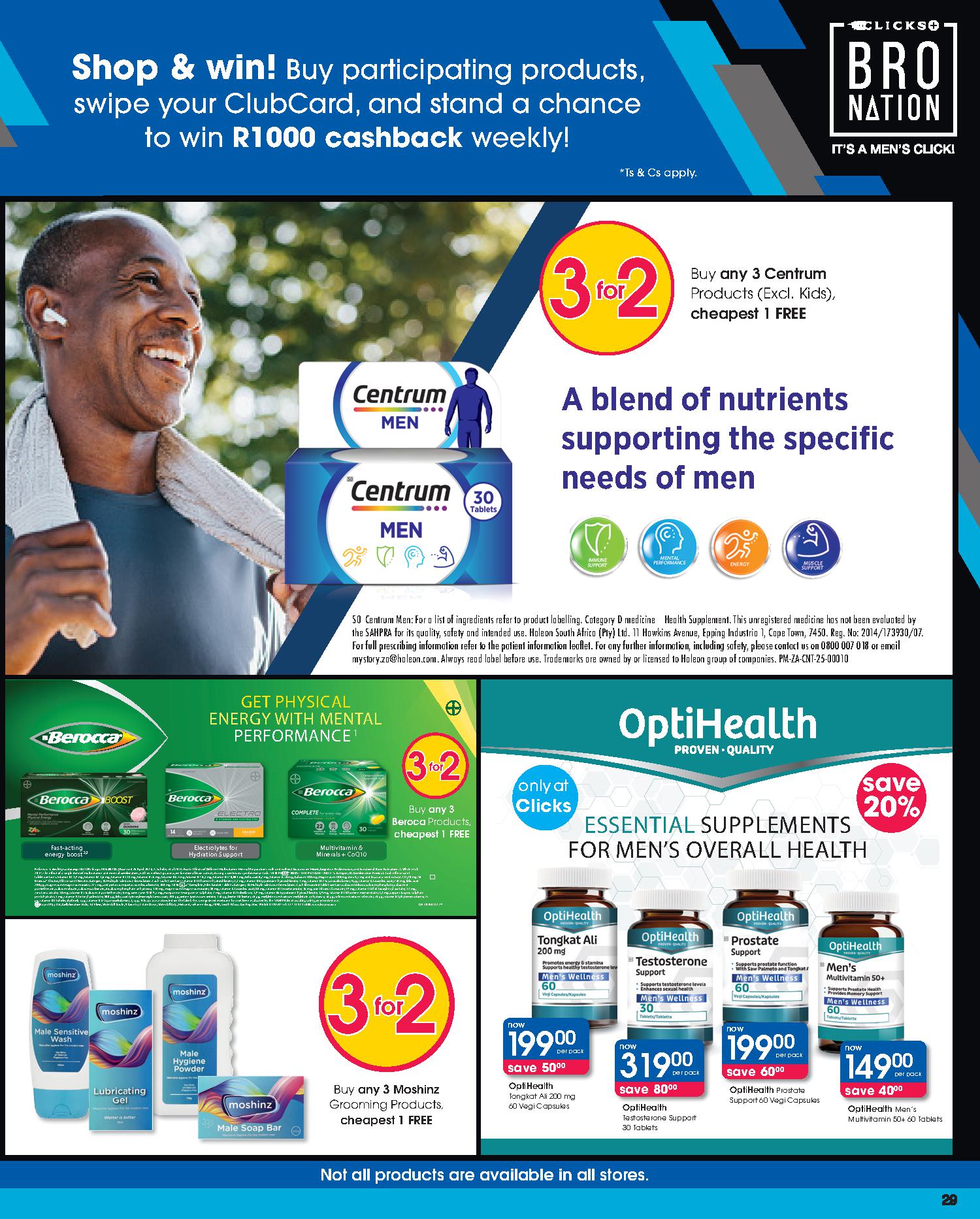 Get savings on: Lindt Lindor Truffles 125g, Pampers Active Baby Disposable Nappies Jumbo Pack, Clicks Deep Clean Toothbrush, Dawn Body Lotion or Cream, Omo Auto Washing Powder 2kg, Disney Baby Textile Products, Playgro Baby Toys, Coty Men’s Deodorant Spray 120ml, Wahl Colour Coded Combo, Philips DualCut Precision Trimmer, and many more.