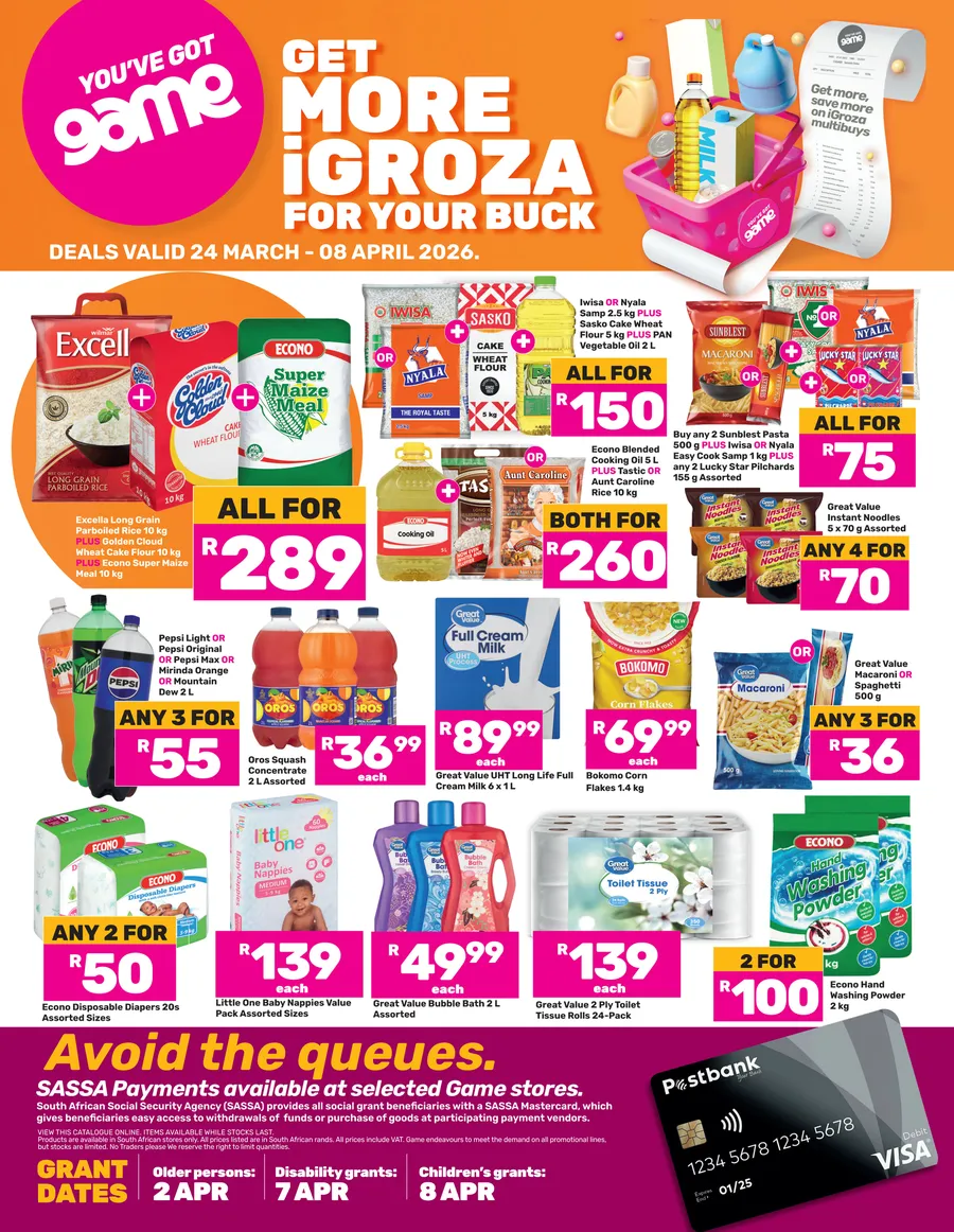 Check out the Game Catalogue Deals, valid 24 March – 8 April, 2026. Save with the Game weekly specials and computers & jewellery offers. Shop using the Senior Citizens Discount Card and get 10% OFF the first R1500 you spend in-store – 10% OFF for all pensioners every day.