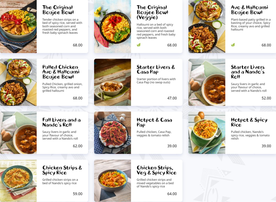 Browse the Nando’s Menu and Prices, Delivery Menu & Specials. Don’t miss the South Africa Nando’s Specials, full chicken prices, burger menu offers, promotions & discounts.
