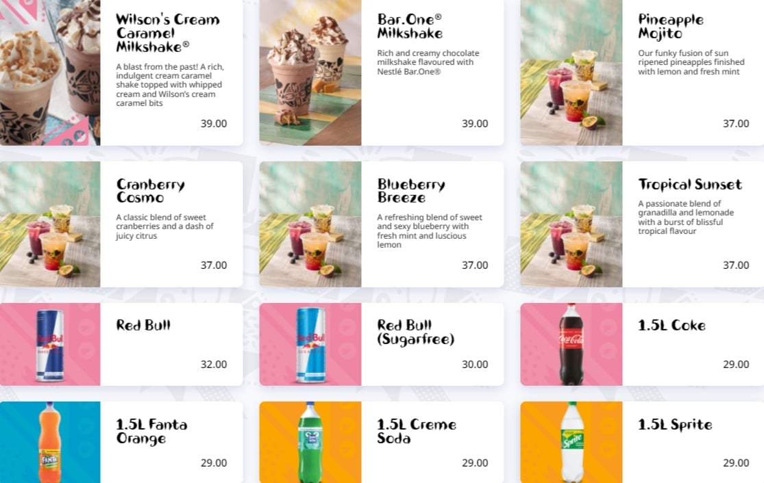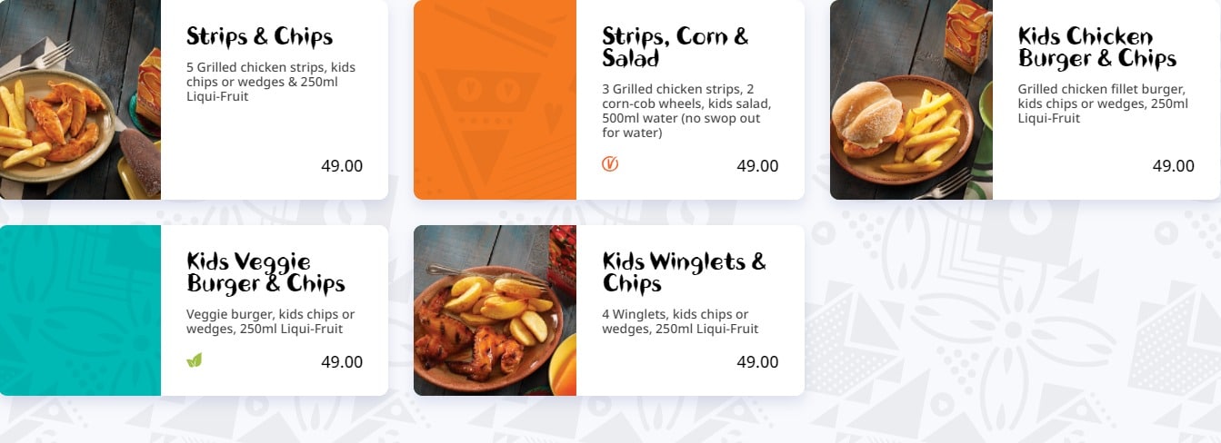 – Full Chicken + 2 Sharing Sides +1.5L (No Sugar) from only R199, and add another full chicken from R99 – Get full chicken, 2 sharing sides and a 1.5L Coke no sugar for a limited time only.