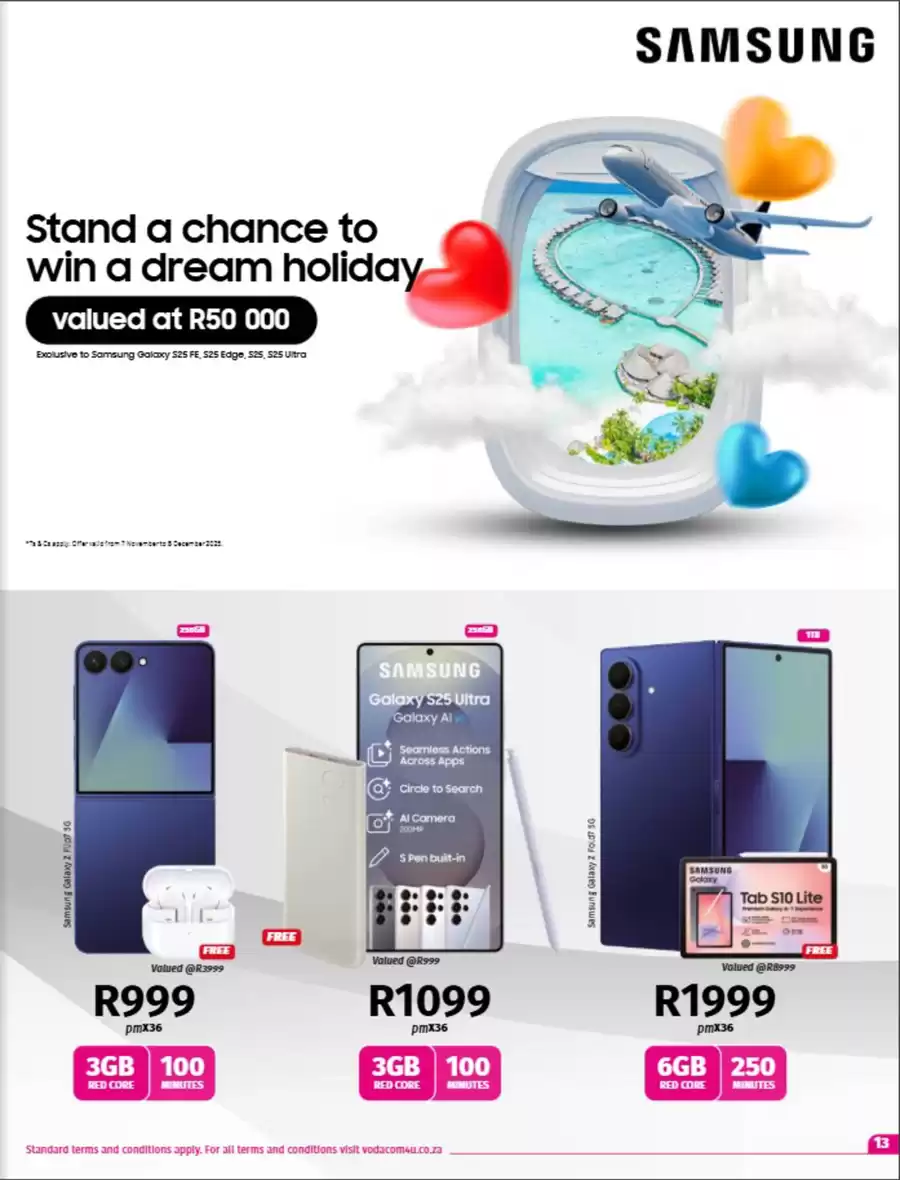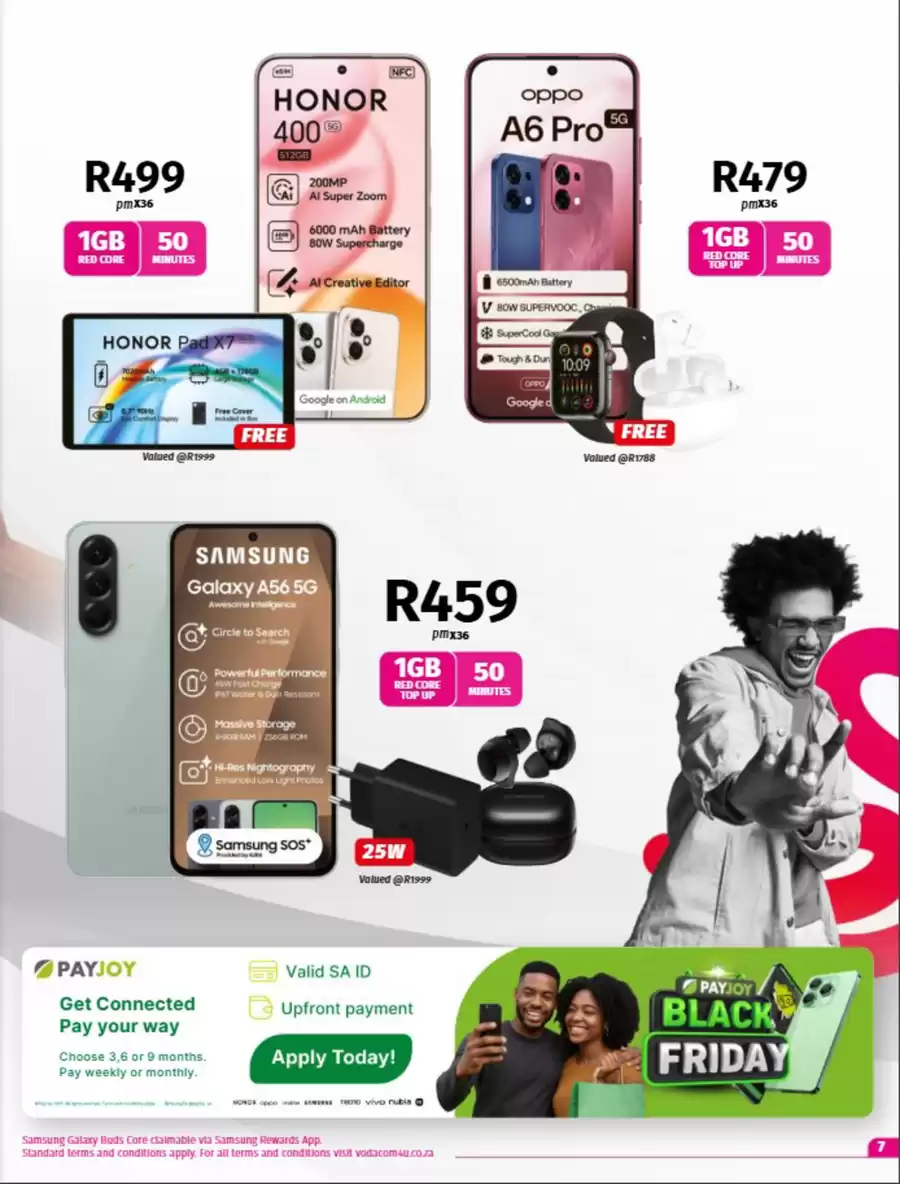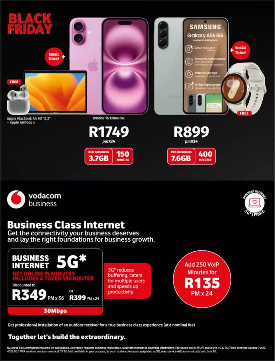 Browse Vodacom Black Friday 2025 Deals, Best Sales & Specials. Don’t miss the Vodacom Black Friday Specials on a wide range of products & services, including phones from Samsung, Huawei, Apple, tablets or Black Friday laptop deals.Shop the best deals of the year with the Black Friday Specials from Vodacom South Africa. The specials will be available online and in stores, starting 7 November – 8 December – up to 70% OFF. Free delivery within South Africa on cellphone contracts, upgrades and prepaid devices.